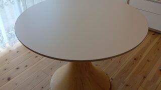 楽印堂のセラミック天板ダイニングテーブル丸形100cmを約6ヶ月間実際に使用している筆者が、組み立ての注意点や天板の質感などをレビューします