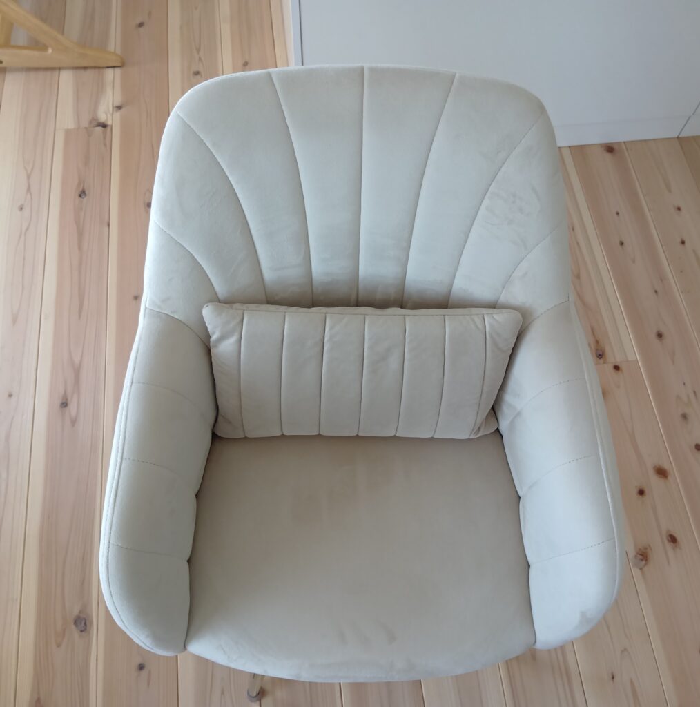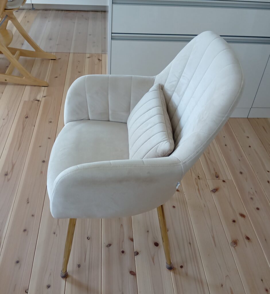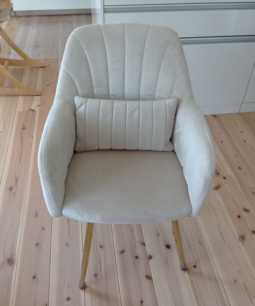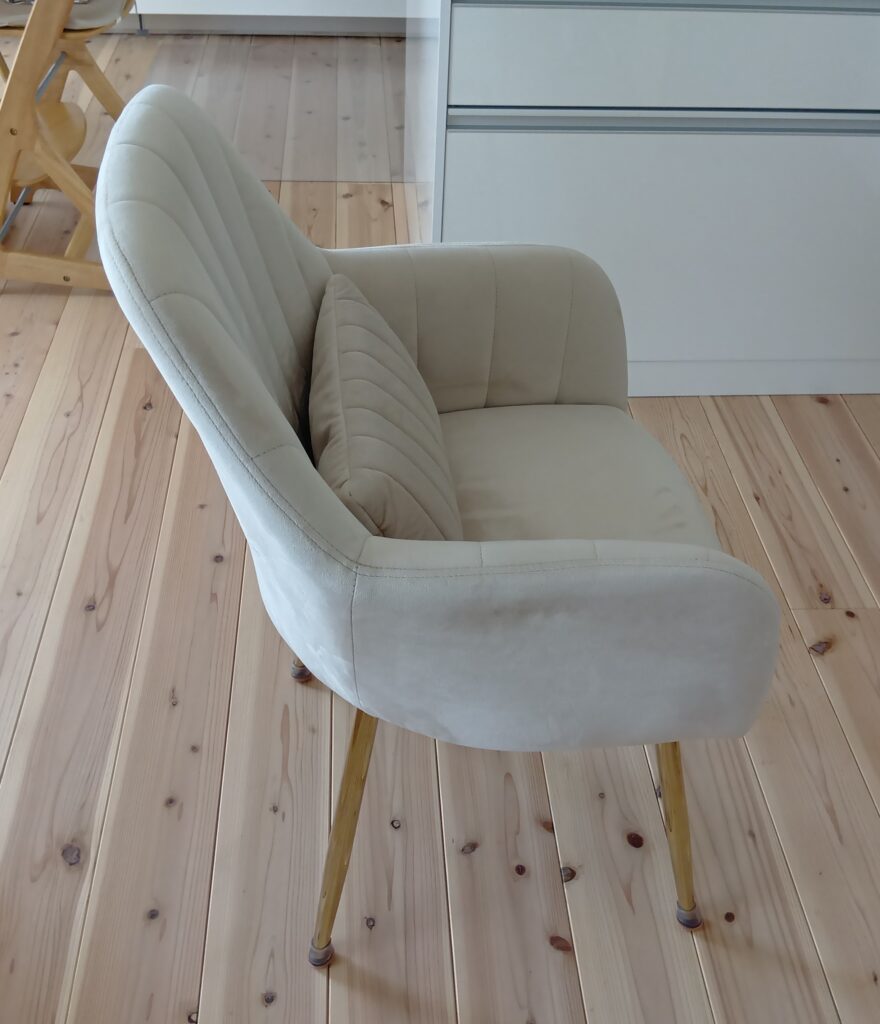 ASHELジェリスダイニングチェア肘付回転椅子のレビュー【クッション隙間のゴミと脚の傷付きに注意】