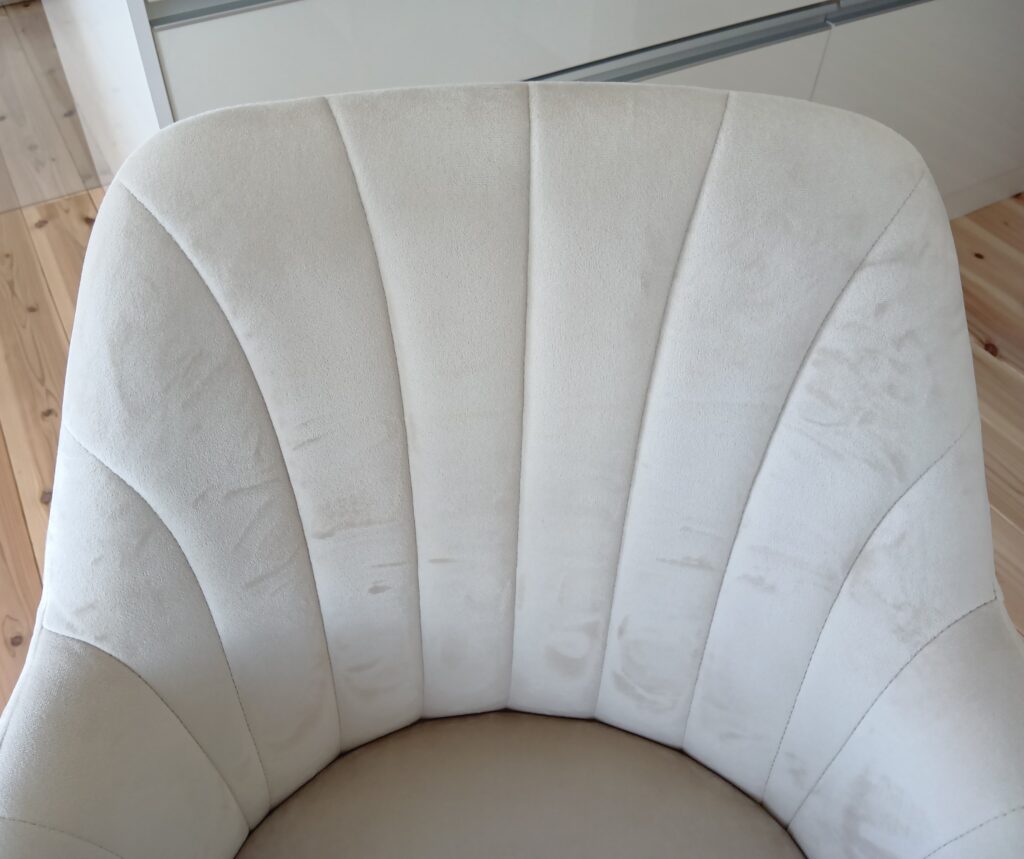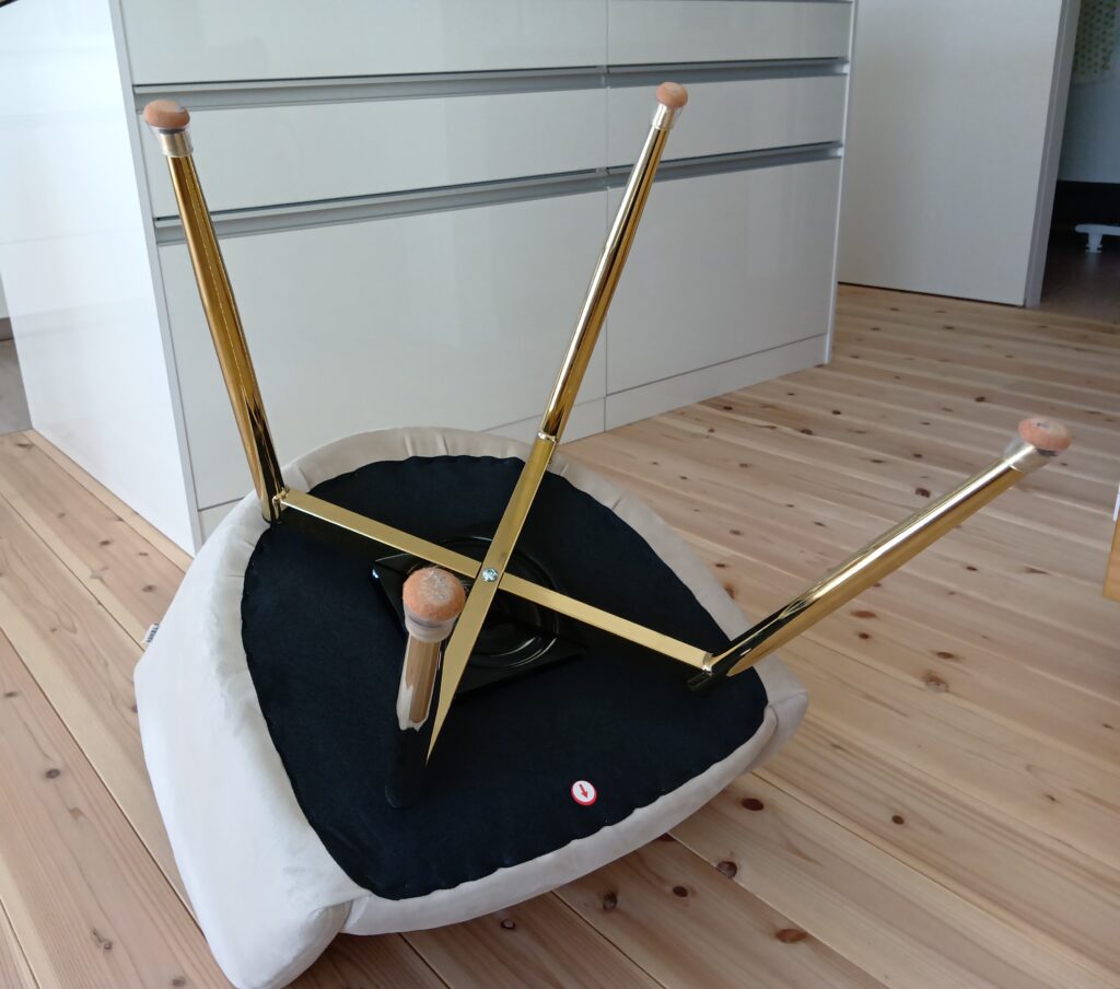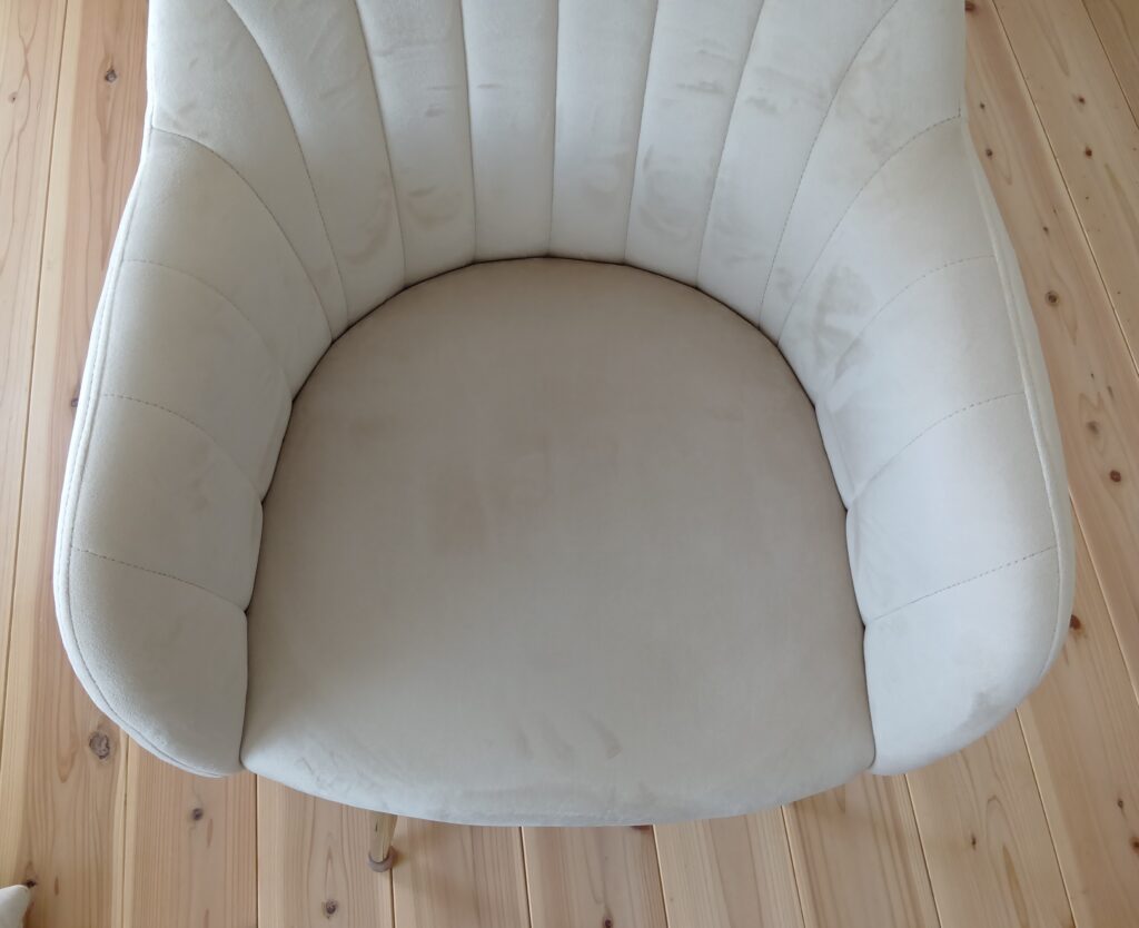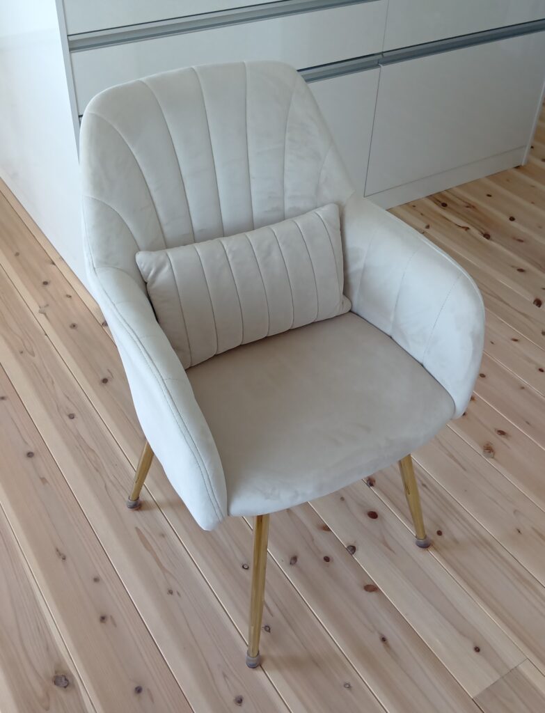 ASHELジェリスダイニングチェア肘付回転椅子のレビュー【クッション隙間のゴミと脚の傷付きに注意】