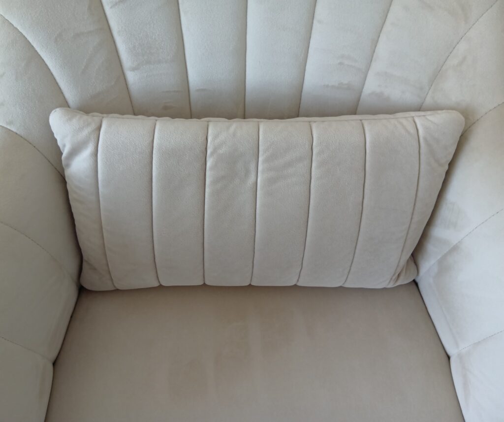 特に、背もたれの貝殻のような見た目の縫製は、キレイな曲線を描いており精度が高く仕上げられています。