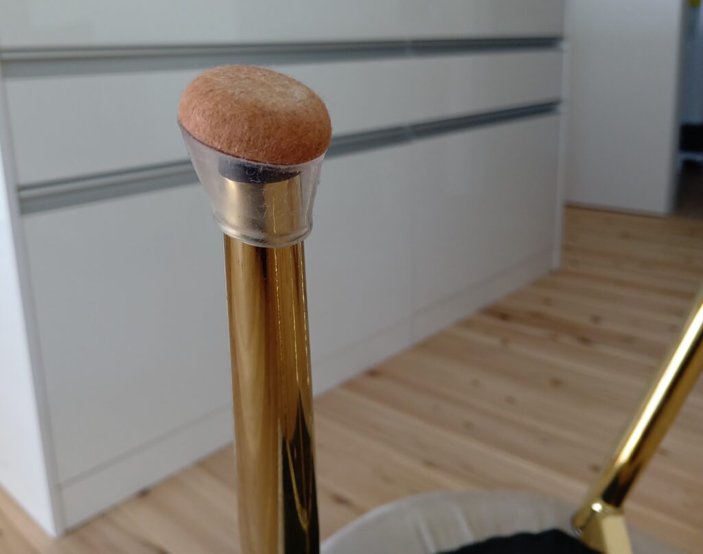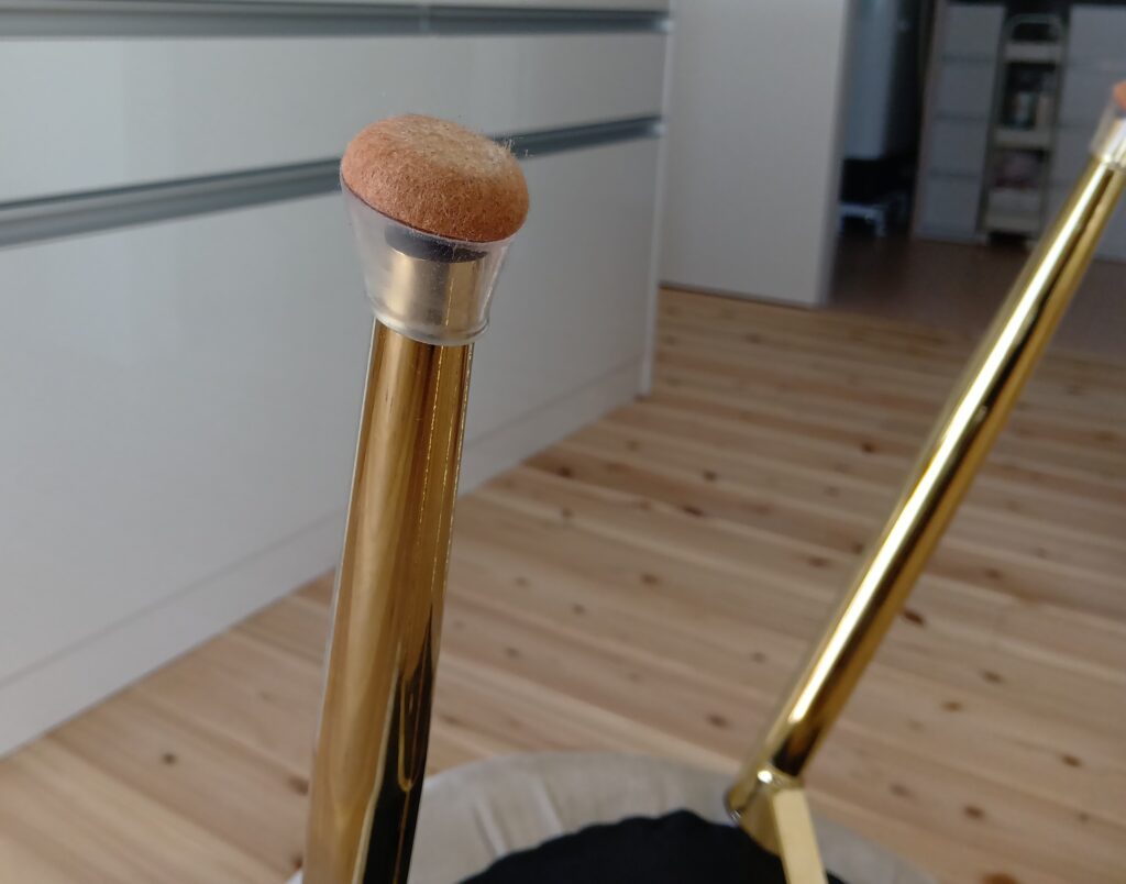 筆者は床の傷付き防止のために、椅子の脚にカバーを取り付けています