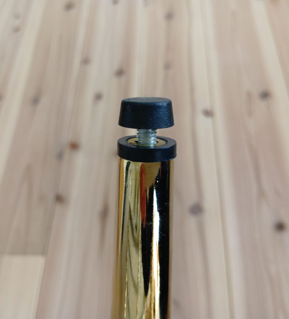ちなみに、プラスチック製の脚先はネジで5mm程上下し、高さの微調整が出来るようになっています