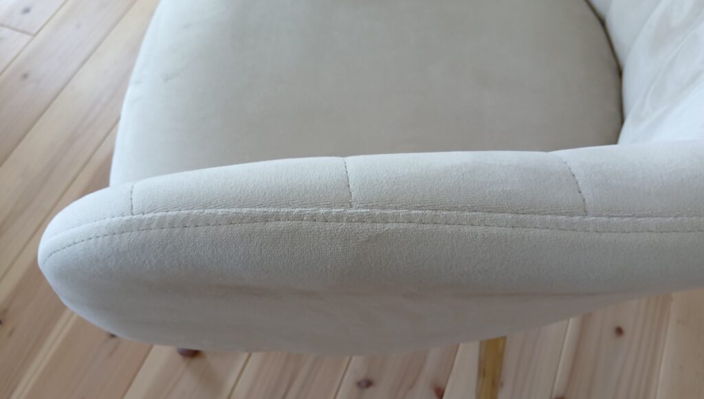 ASHELジェリスダイニングチェアの縫製は割としっかりしており、糸のほつれやほどけなどは一切ありませんでした。
